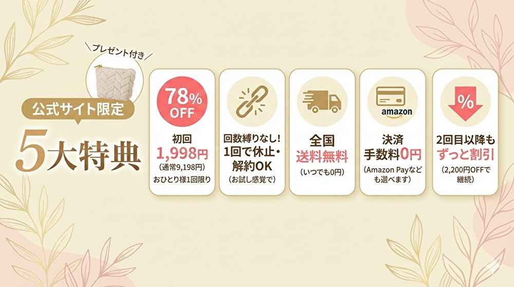 「ちょっと試してみたいけど、損はしたくない…」 そんな方のために、公式サイト限定のお得なキャンペーン情報を整理しました。
